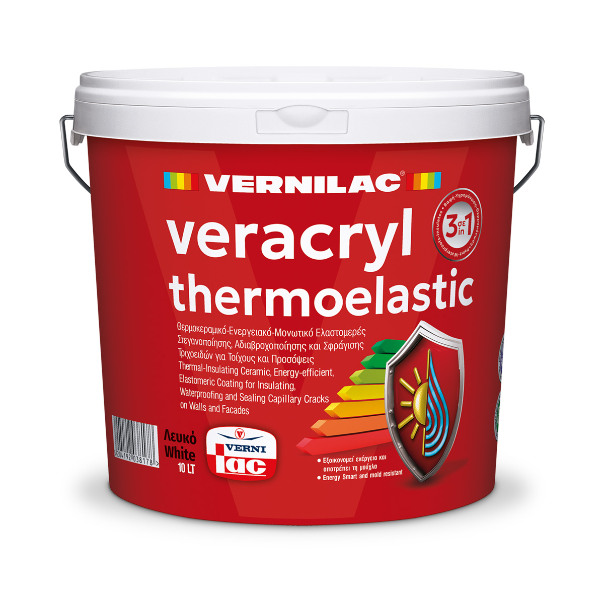 Θερμοκεραμικό ενεργειακό χρώμα τριπλής δράσης 3 σε 1 που βάφει, στεγανοποιεί και θερμομονώνει, προσφέροντας έως 30% εξοικονόμηση ενέργειας, ελαστομερή προστασία από μικρορωγμές και ανθεκτικότητα απέναντι σε υγρασία, μούχλα και ακραίες καιρικές συνθήκες.